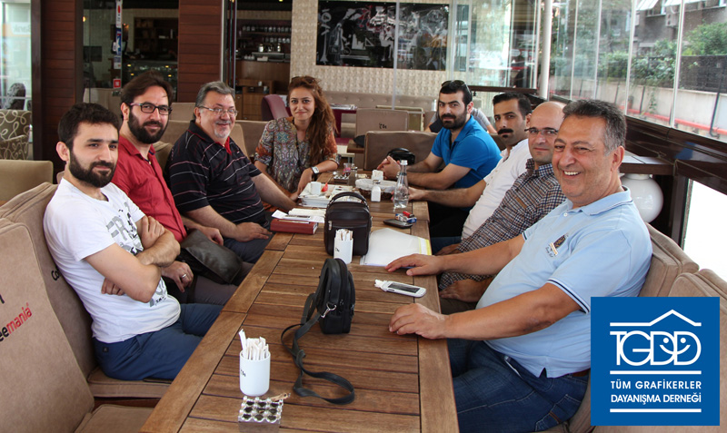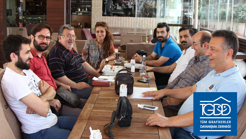 Toplantının ilk saatlerinde üç avukat arkadaşımızın birbirleriyle tanışma konuşmaları ve TGDD içinde neler yapılabilir konulu konuşmaları yer aldı. Özellikle Avukat Eşref KİREÇ, katılımcı sayısının azlığından duyduğu üzüntüyü ve derneğimizin üye sayısının arttırılması için neler yapılması üzerinde durulmasını belirtti. Avukat Tuğçe KARABAĞ ise böyle toplantıların grafikerlere umut vermesi gerektiğini bu toplantılar sayesinde grafikerlerin Derneğe karşı daha istekli ve dayanışmaya hevesli hale gelmelerini, böyle toplantıların duyurularının ve haberlerinin resimlerle birlikte en geniş kitlelere duyurulması gerektiğini, aslen reklamcı olan grafikerlerin böyle toplantıların reklamlarını yapmaları gerektiğini söyledi.