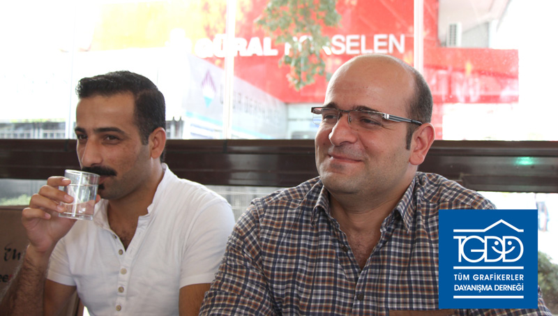 Toplantı saat 15.00 e kadar devam etti. 15.00’de herkes dağıldıktan sonra grafiker Serdar GÜNGÖR meslektaşımız yanında genç bir arkadaşla geldi.